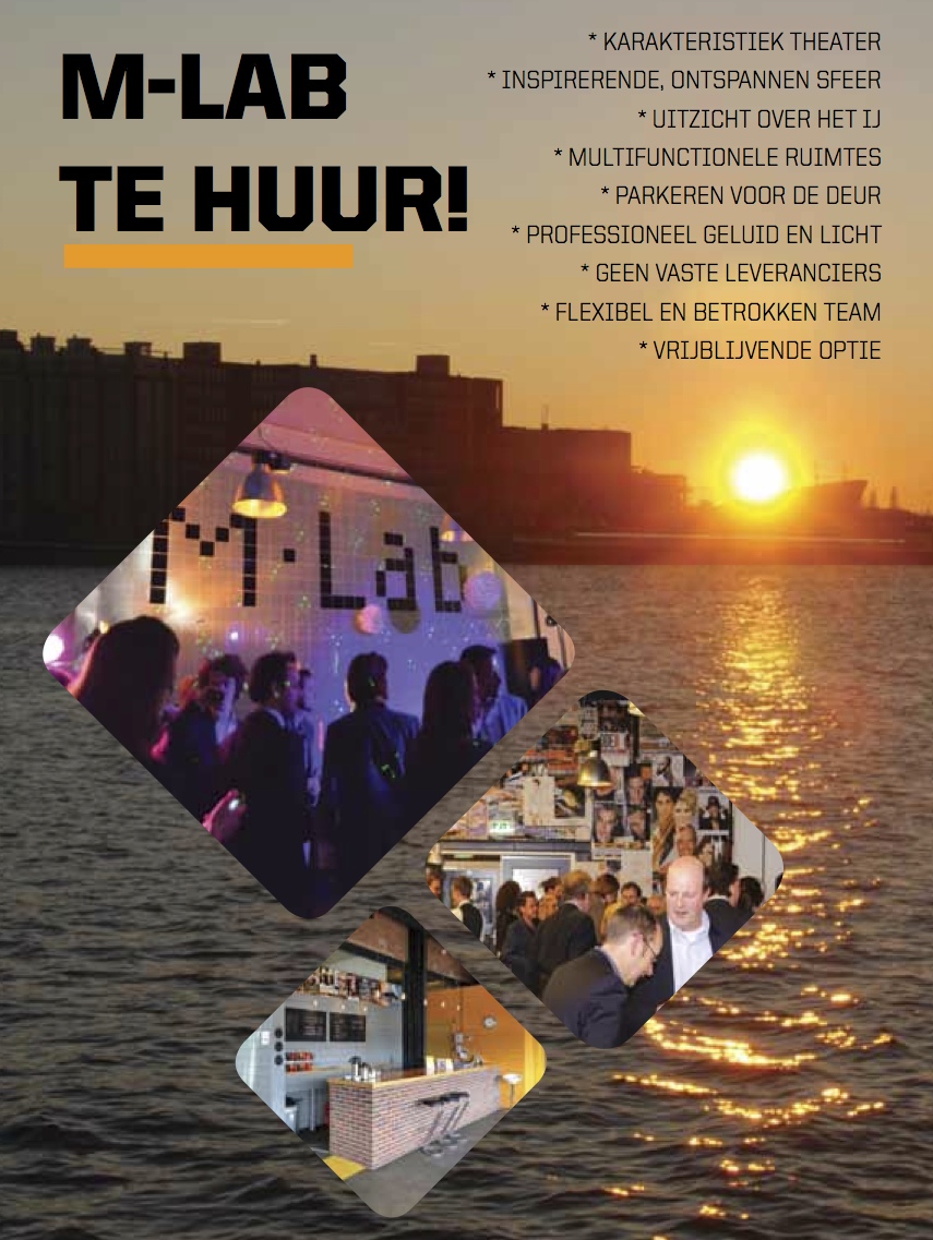 M-Lab (theaterzaal, repetitiestudio en/of foyer) is ook te huur voor uiteenlopende (zakelijke) evenementen, bijeenkomsten en festiviteiten.
